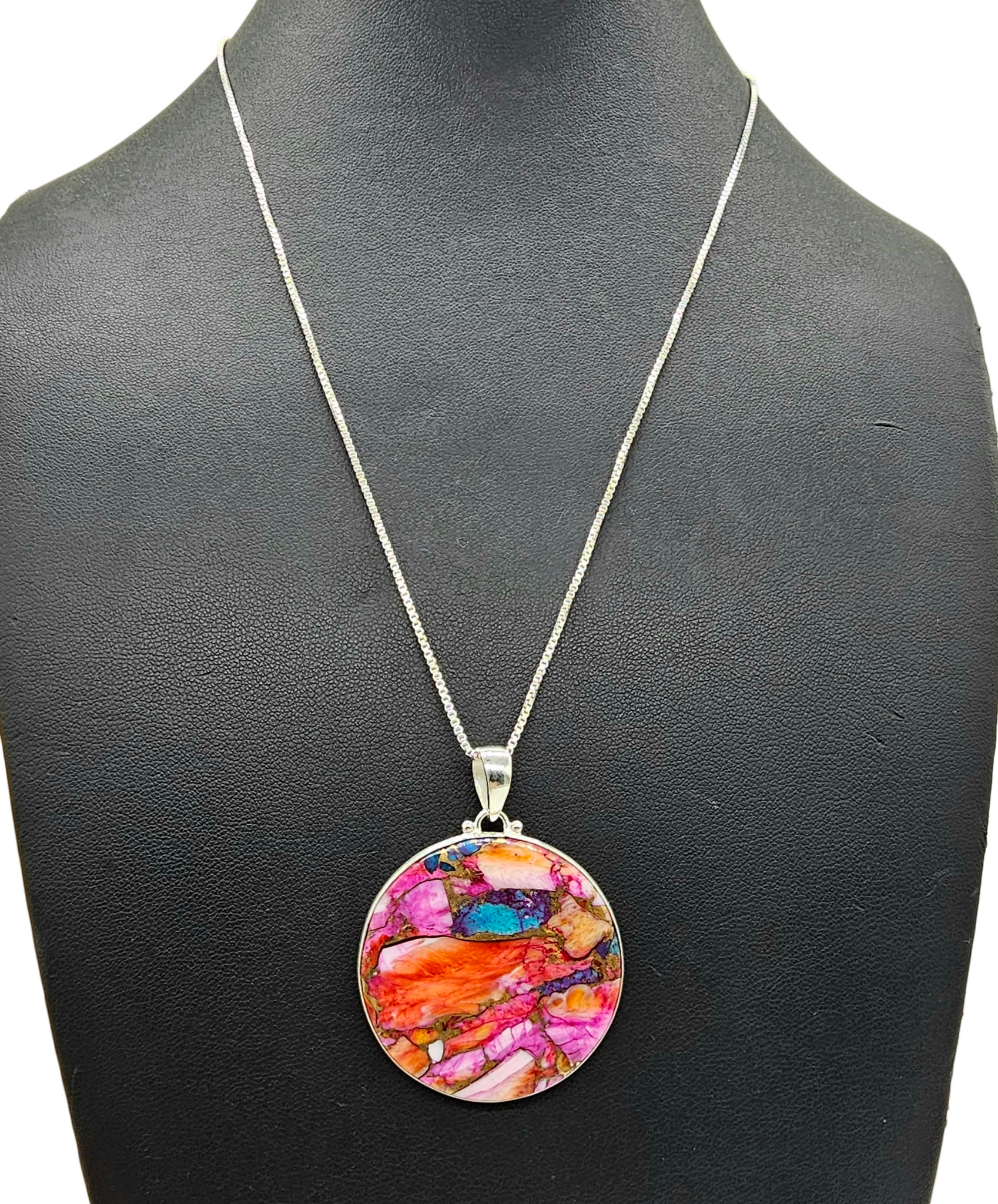Stunning Oyster Turquoise & Pink Opal Pendant in a large round shape