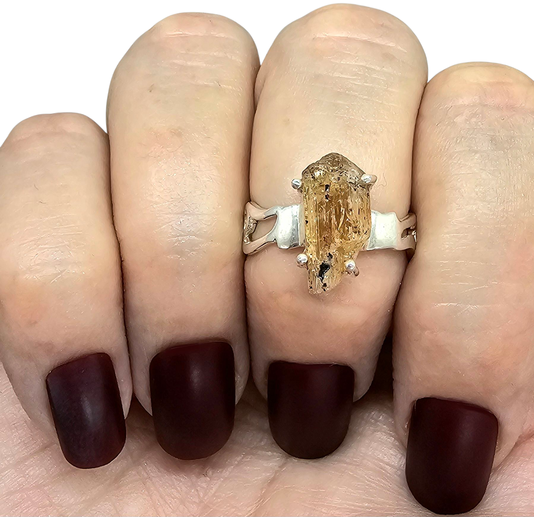 Imperial Topaz Ring, Size 7 3/4, Sterling Silver, Raw Gem, Filigree Band, Manifestation Stone, Solar Plexus Chakra, Rare Variety of Topaz
