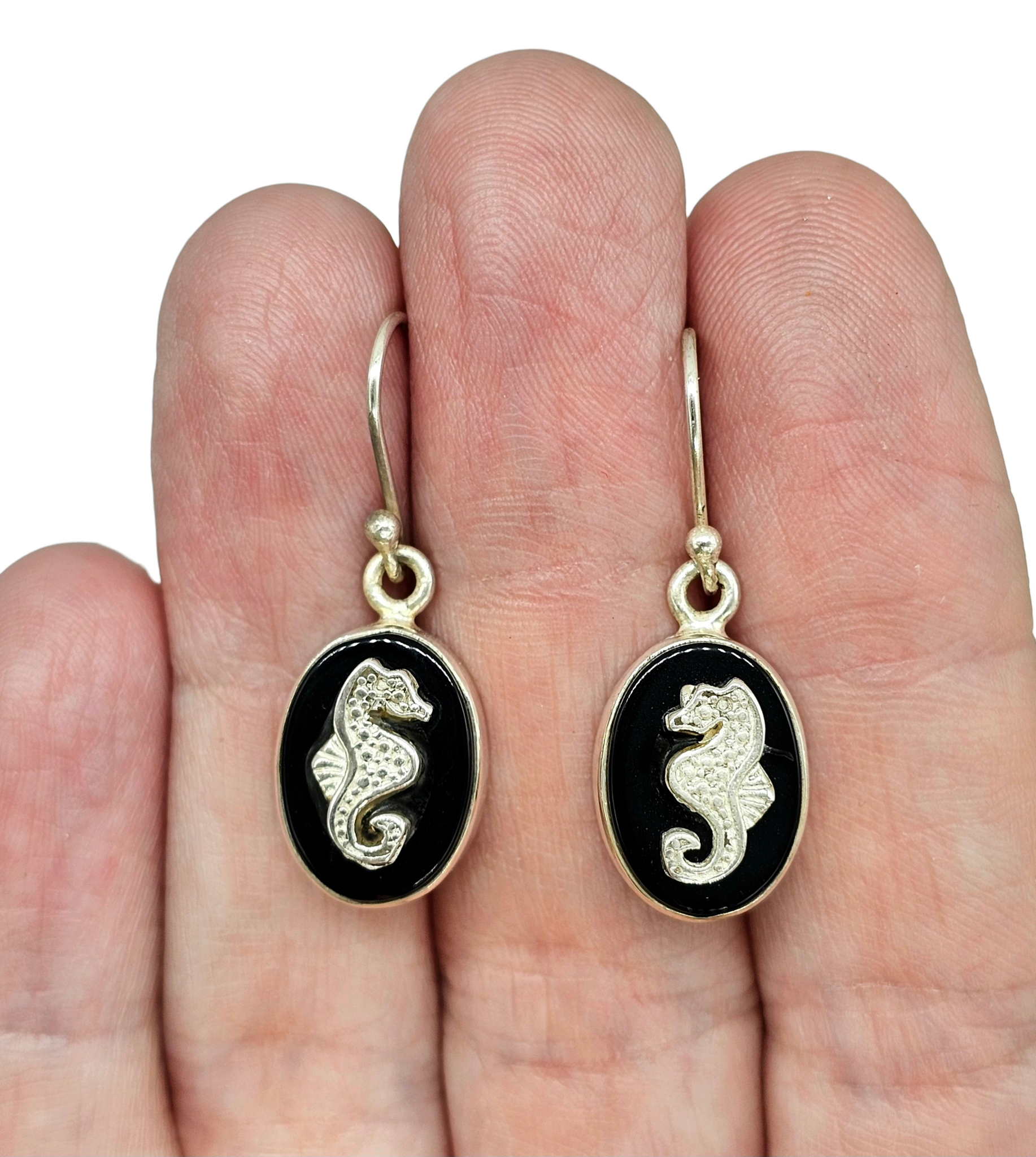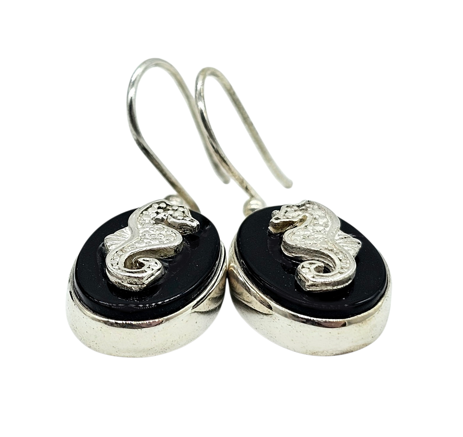 Black Onyx Seahorse Earrings, Sterling Silver, Leo / Capricorn Zodiac Gemstone, Gives Strength, Provides Support, Grounding Stone