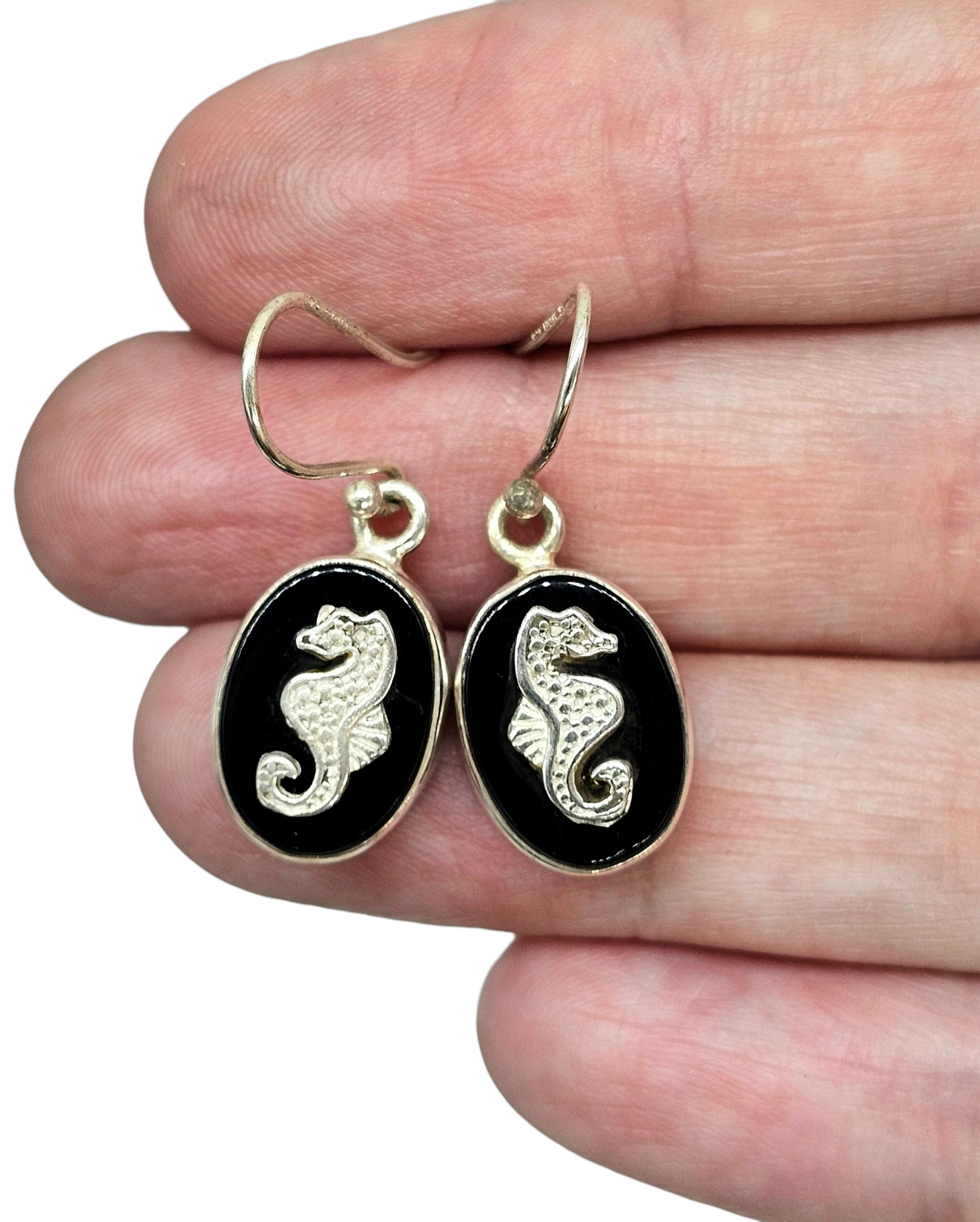 These oval black onyx and sterling silver earrings are effortlessly chic with a touch of ocean-inspired magic. The deep, glossy black onyx creates a striking contrast against the finely detailed silver seahorse, symbolising protection, strength and calm confidence. Elegant yet playful, they’re the kind of earrings that elevate a simple outfit and spark compliments every time you wear them—timeless, meaningful, and irresistibly wearable. 🖤✨