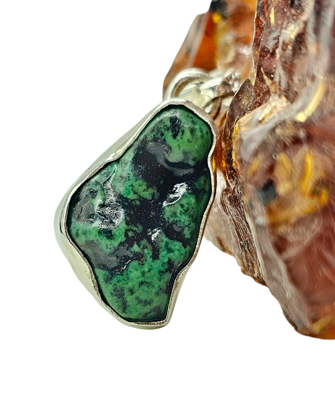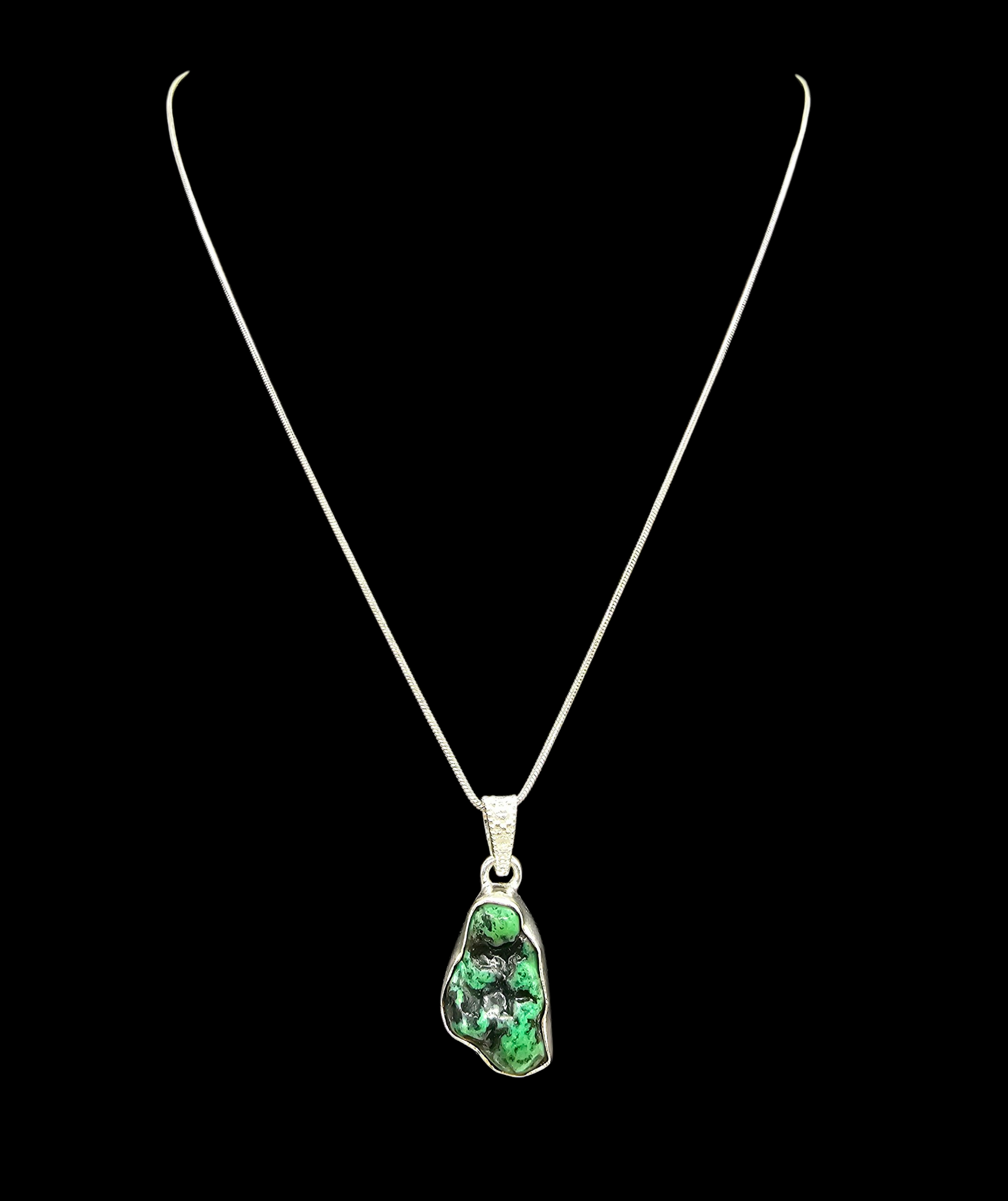 Emerald Green Tibetan Turquoise Pendant, Sterling Silver, Protection Stone, Love Rock, December Birthstone, Mood Rock, Rough Gemstone
