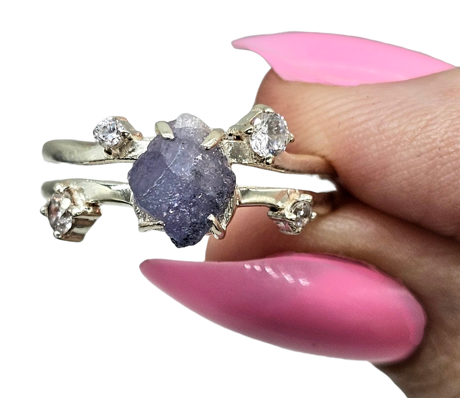 Raw Tanzanite Constellation Ring, Size 8, December Birthstone, Sterling Silver, Rough Tanzanite, Artisanal Piece