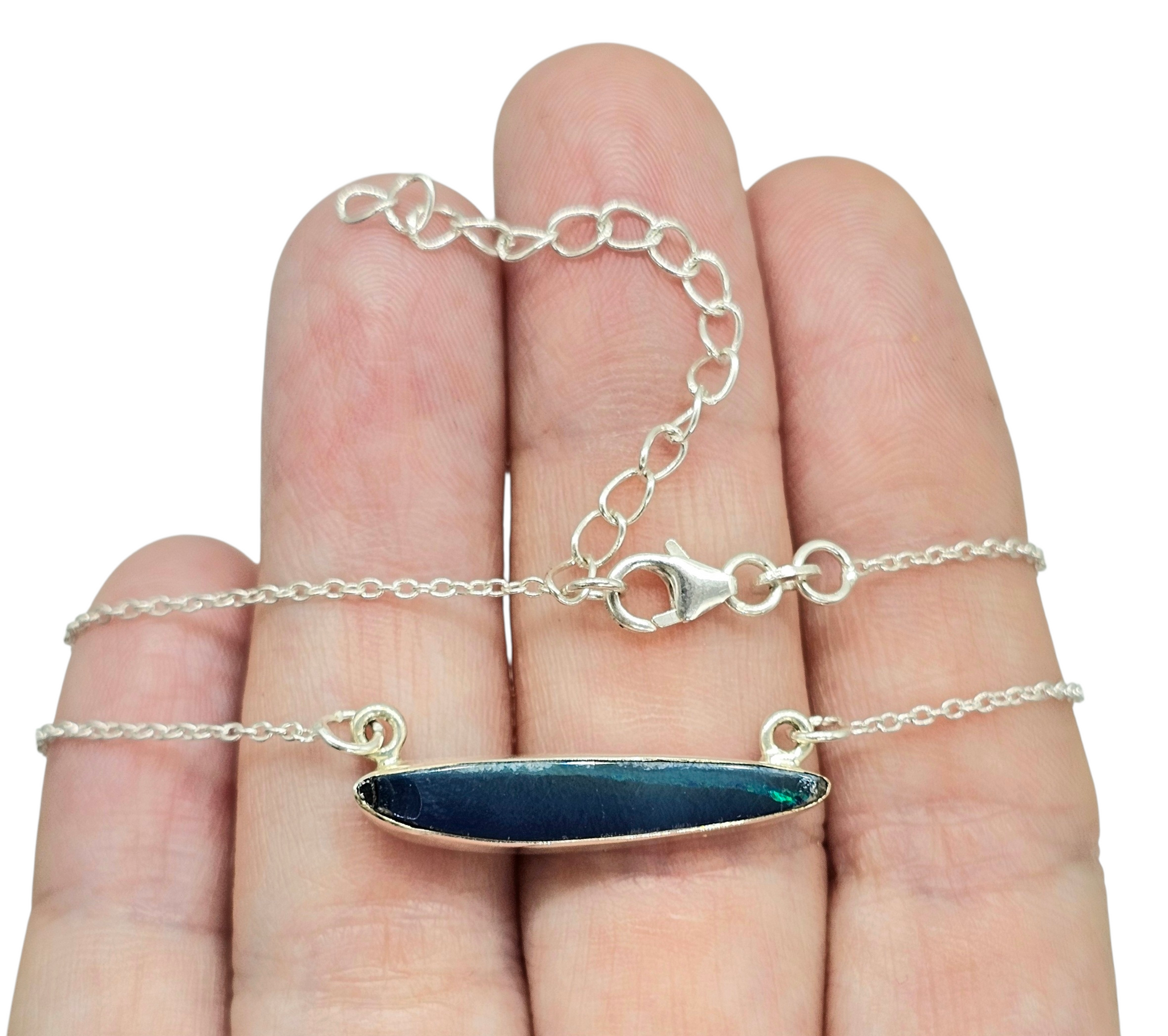Australian Opal Necklace, Sterling Silver, October Birthstone, Blue Green Opal, Precious Gemstone, Pure Energy, Lucky Gem