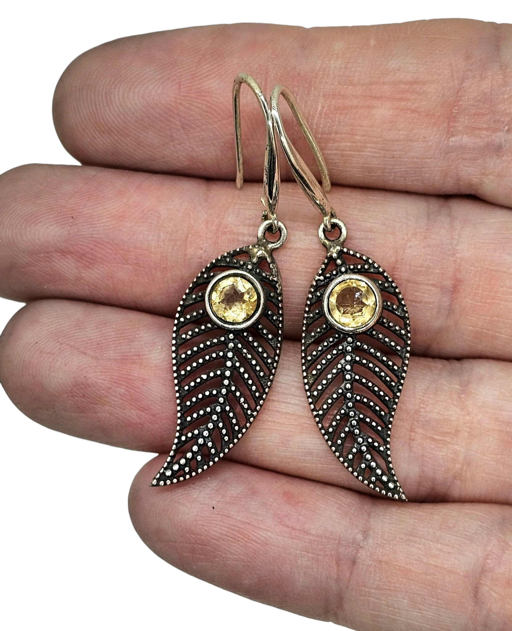 Citrine Earrings, Leaf Design, Sterling Silver, November Birthstone, Luck & Fortune Stone, Wealth and success stone, Oxidised Silver Drops