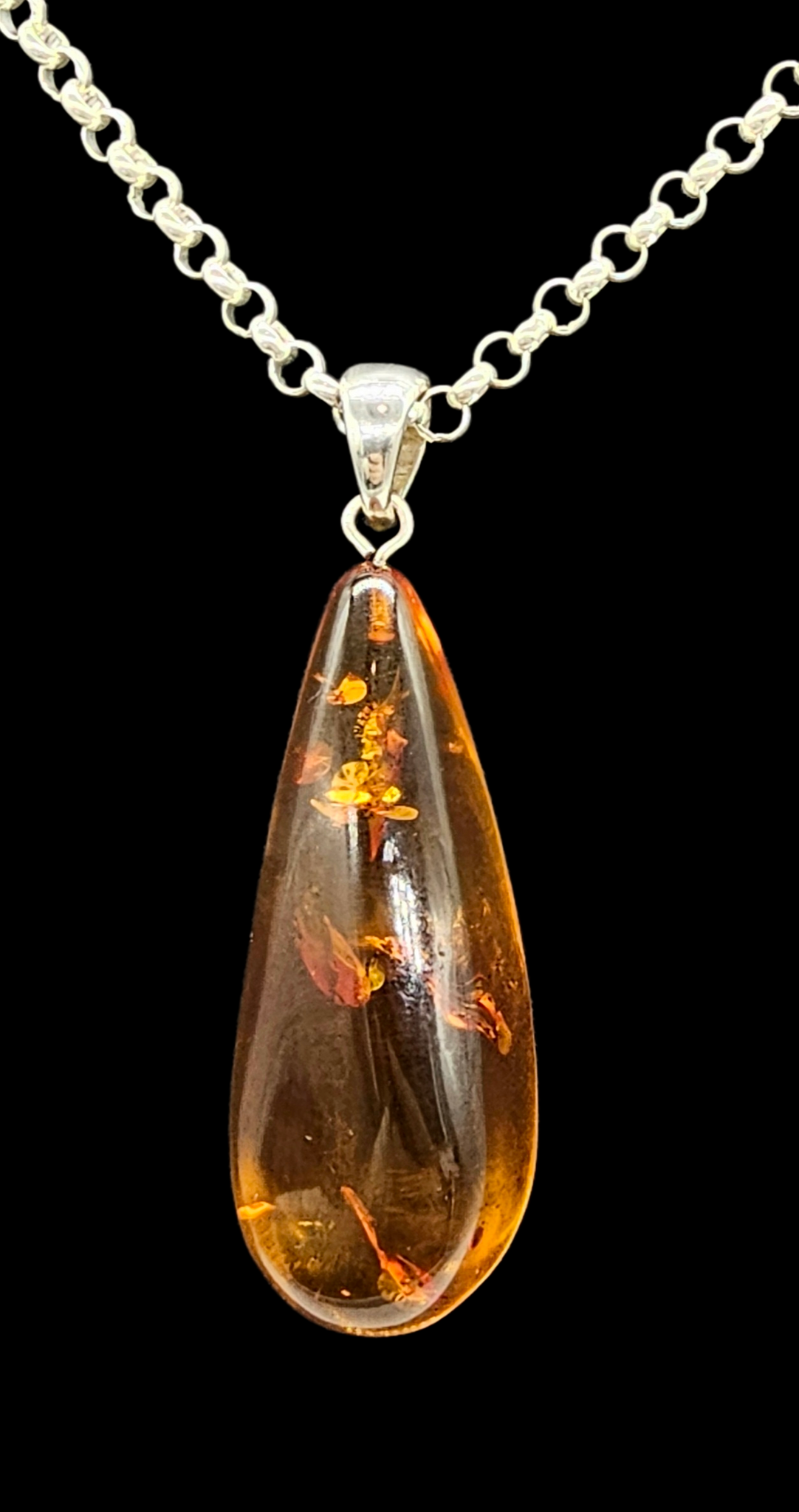 Cognac Amber Pendant, Sterling Silver, Millions of years old, Fossilized Tree Resin, Balance Gem, Wisdom Gem, Genuine Baltic Amber, Solid