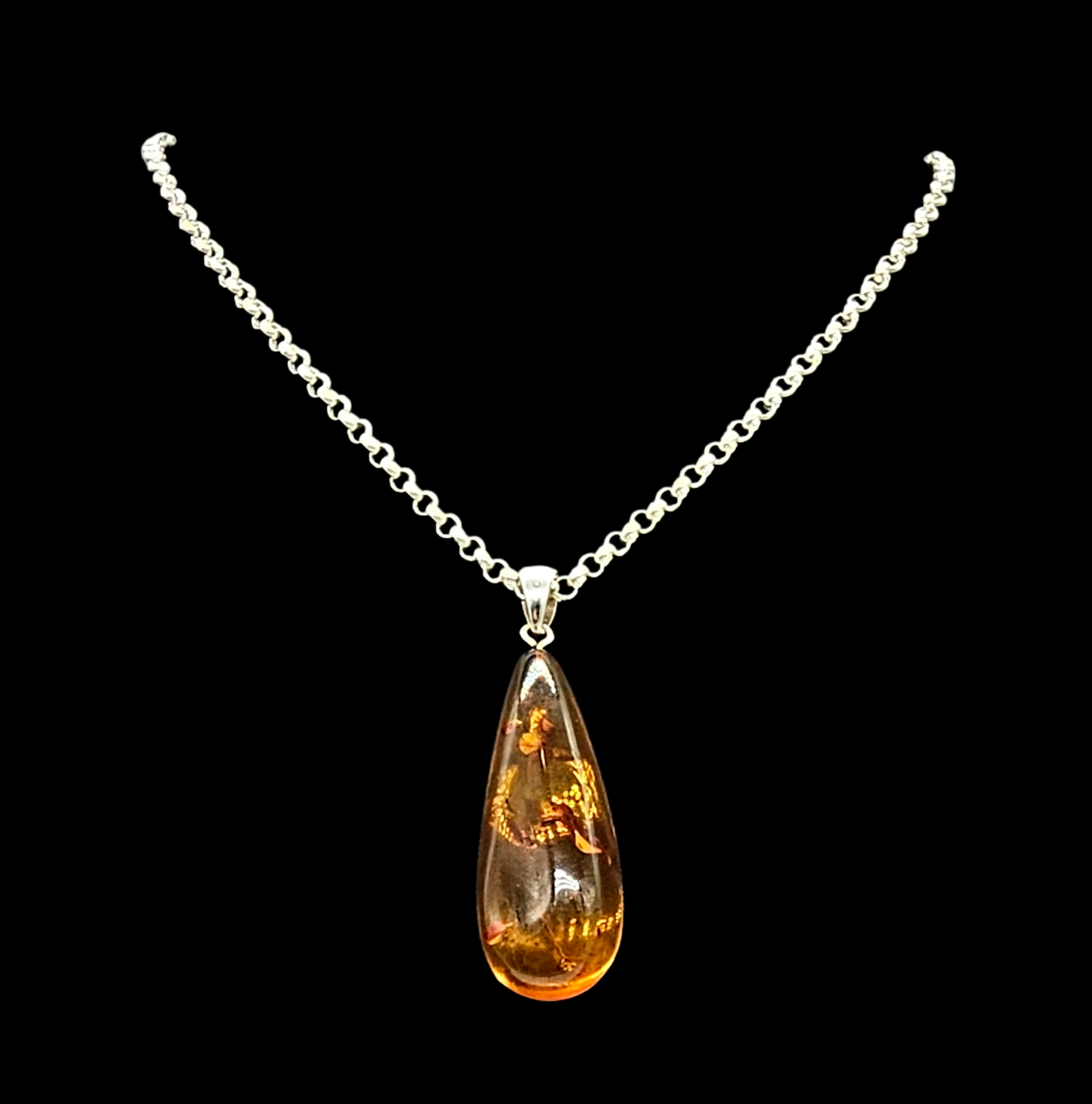 This stunning Cognac Amber Pendant is the perfect addition to any jewellery collection. Made of fossilized tree resin that is millions of years old, this pendant features warm orange hues that are beautifully accentuated by the sterling silver setting. A timeless piece that is sure to make a statement.